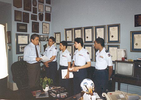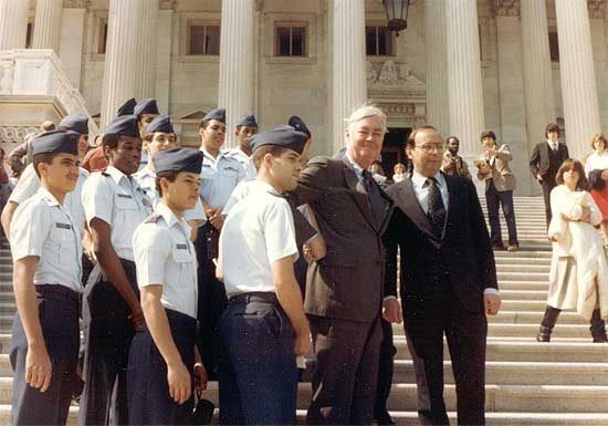 Sweepstakes trophy is presented to the team by the AF Chief of Staff