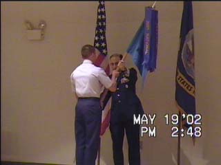 Cadet Kubera accepts the coveted NER guidon with the 13 NCC Champion streamers