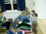 Marching in the hall; preparing the uniforms (click on pictures for bigger view)
