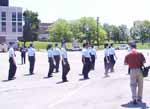 The Demon Drill team waits for the start of drill; Performing the drill card.