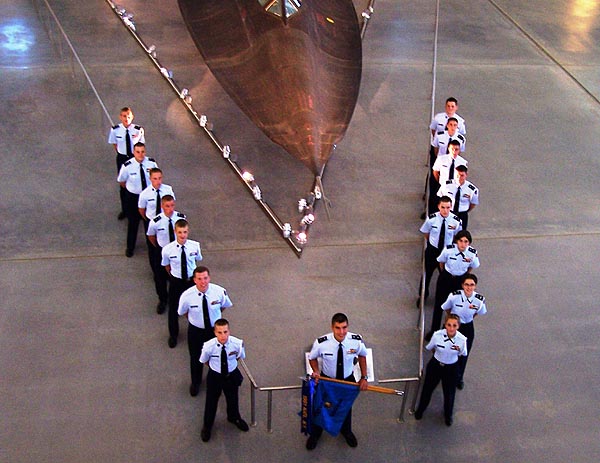 The Demon Drill team in front of an SR-71 display
