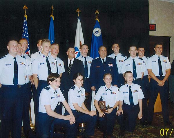 The 2005 National Champion drill team with all trophies earned at competition