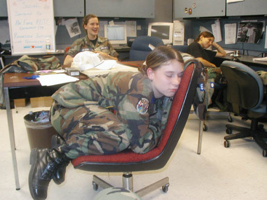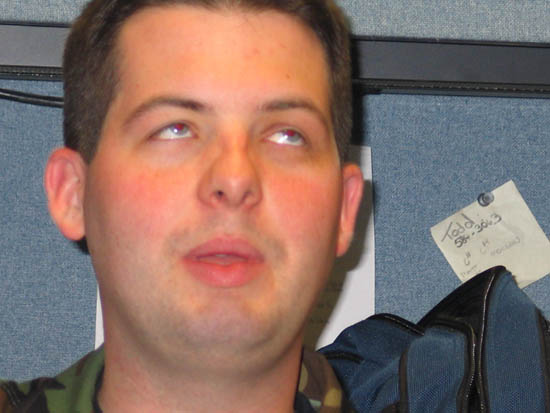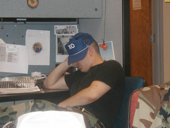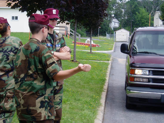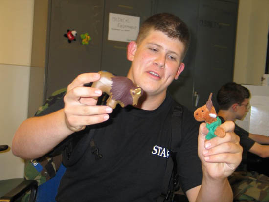 ![]() Lutz gets a lesson about staff assignments at encampment.... |