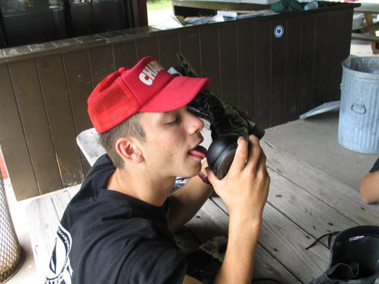 ![]() Makes you wonder what bet he LOST, (or) He thinks it's "Kiwi-flavored" (and is tired enough to try) |