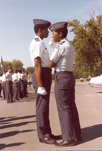 ![]() | Cadets Spencer and Worrell during the flight's Type A inspection in the drill/formation parking lot at Plattsburgh, facing the barracks. |