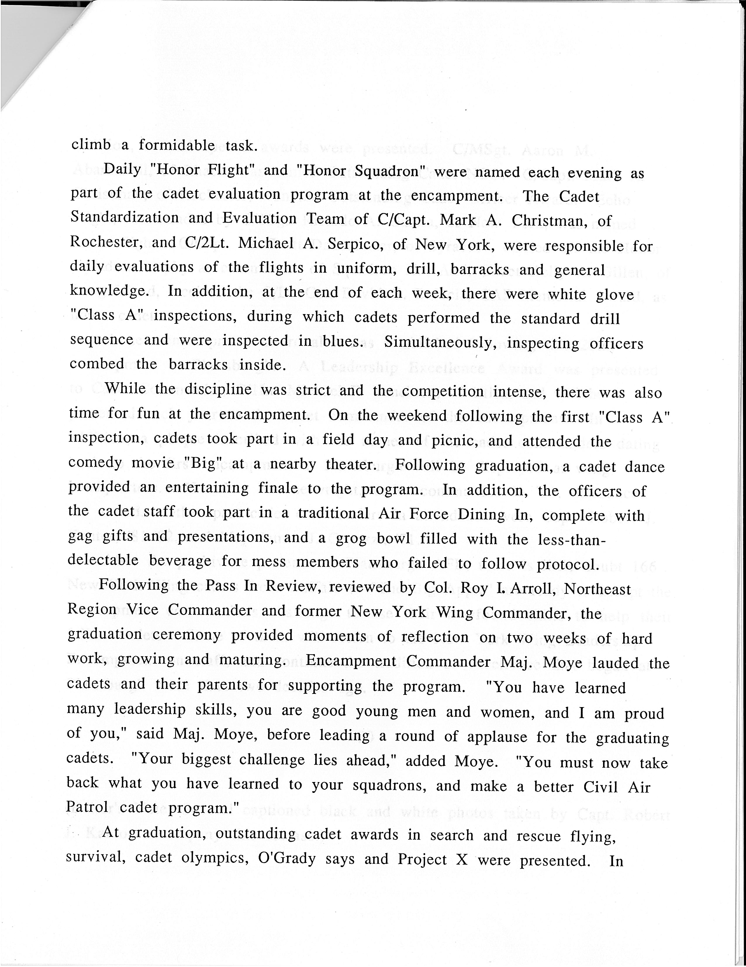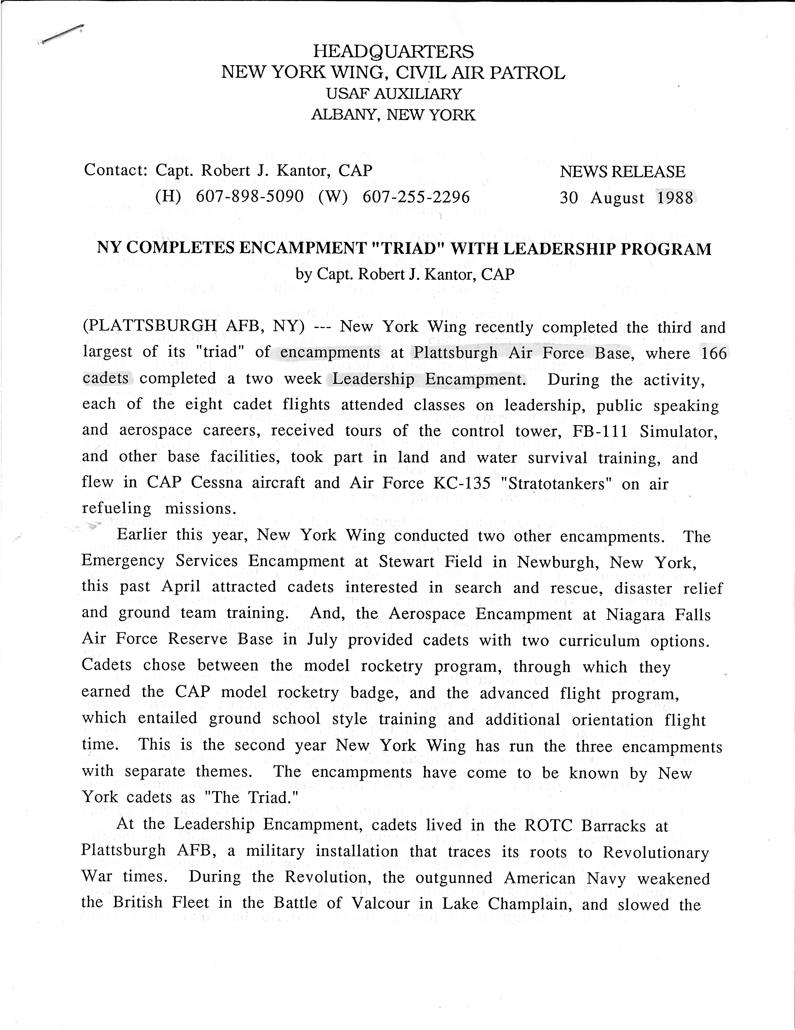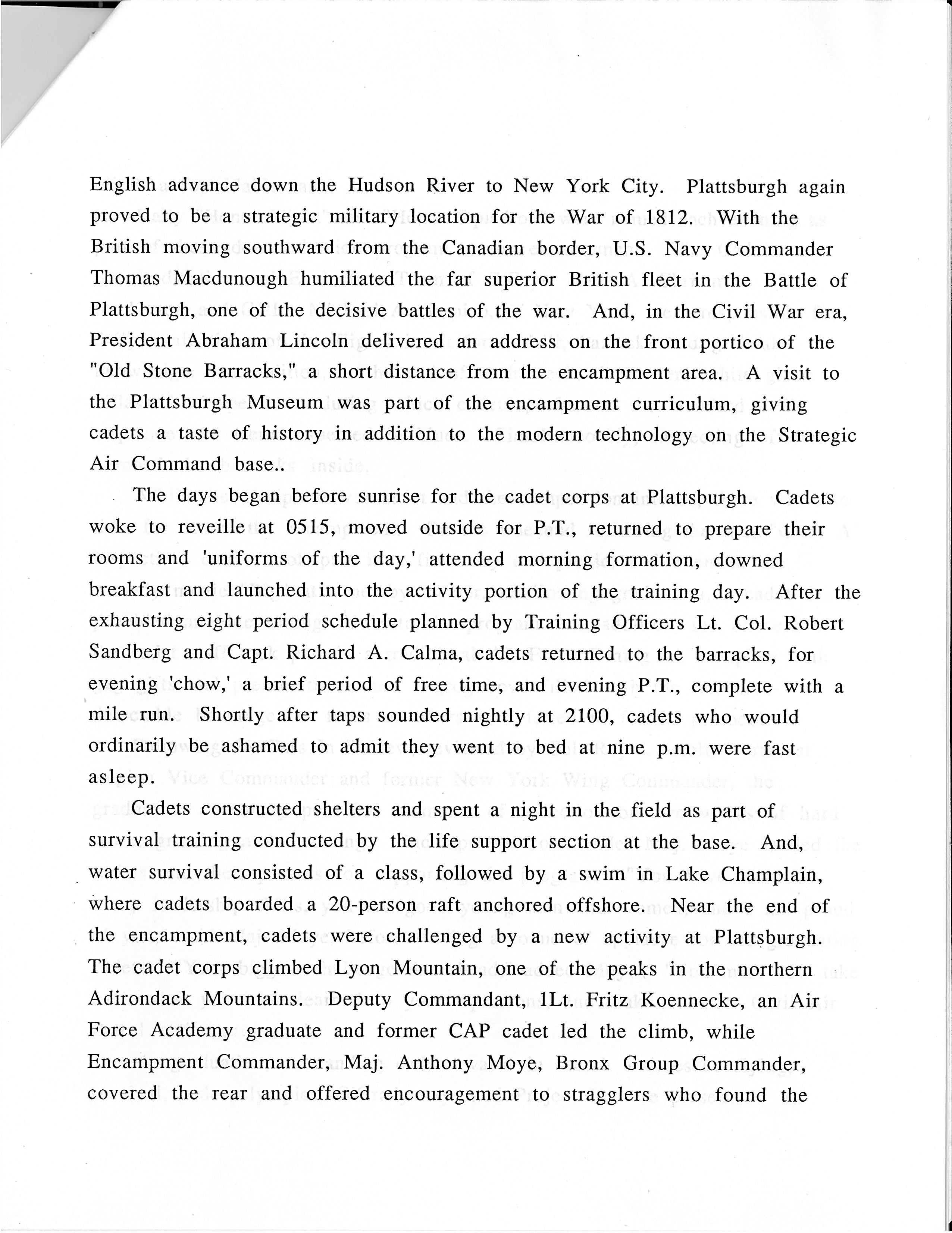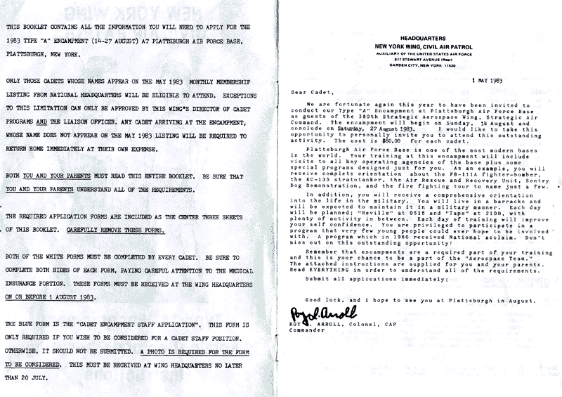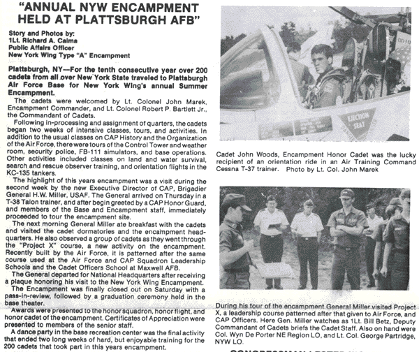 1992 was the last year that New York Wing Civil Air Patrol conducted an encampment at the ROTC barracks at Plattsburgh AFB. An attempt was made in 1993 to use the facilities, but by then the base had been closed due to the massive post-1980's downsizing of the military at the start of the Clinton Presidential administration.