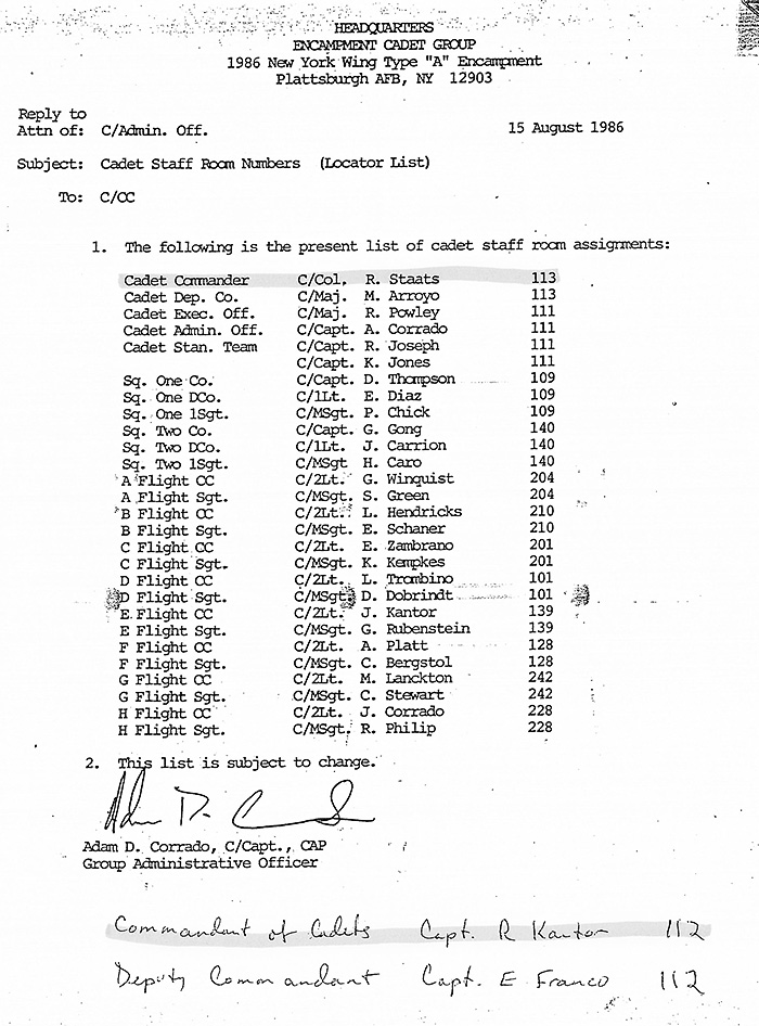 This encampment was also the first time, after successful implementation at Stewart ANGB and Camp Smith, the introduction of mentoring and the complete cadet executive staff. So, for the first time on record, Plattsburgh had a cadet executive staff of more than 3.