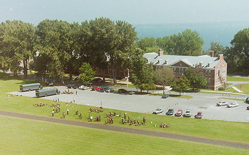 Until 1992, the encampment enjoyed the use of the chow hall in the basement of the barracks buildings, but due to the immenent closing of the base, the encampment was forced to use the general mess hall, which was a 5 min bus ride on the newer side of the base. AFROTC did not conduct a summer field training encampment at Plattsburgh in 1992-- the encampment was always conducted immediately after the field training so the AFROTC cooks could just stay on for the extra 2 weeks. Without those cooks, the training schedule was suddenly filled with travel time to chow.
