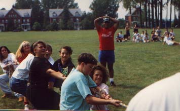 The female flight participating in the tug-of-war competition at the encampment picnic. The female flight (Hotel) eventually lost to Echo flight (led in part by C/FO Andrew Welsh) in the championship round. |