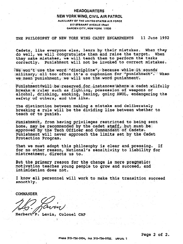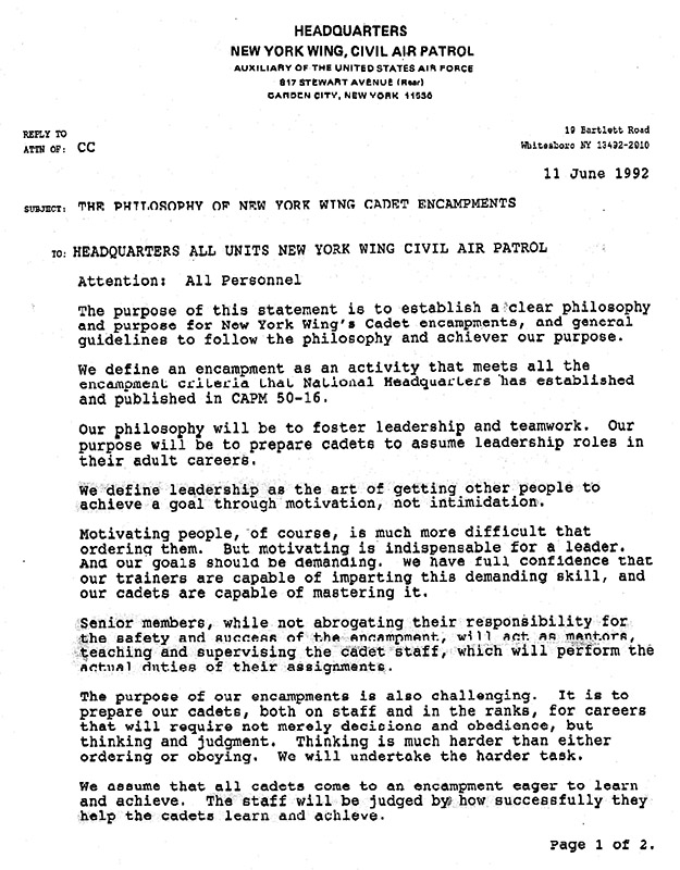 Encampment Philosophy letter from the NYWG Commander at the time, addressed to the 92 staff.