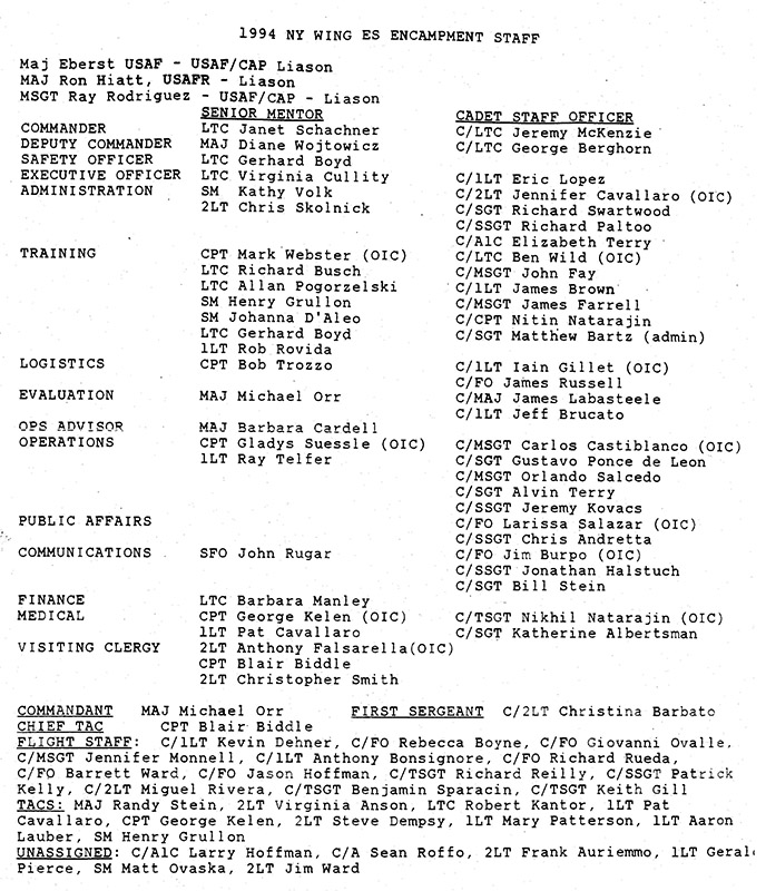 The 1994 ES Encampment at Camp Smith was commanded by Lt Col Janet Schachner.