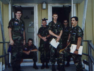 Left to Right: Cadets Fay and Fay (brothers), Maj Mark Crary (ANG uniform), S/M Andrew Welsh (AFROTC uniform), 1Lt Rob Rovida, 1LT Passno |